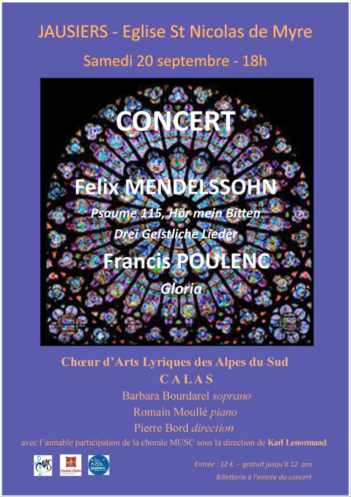 Samedi 22 novembre 2025 à 18h à l'église de Saint AubanDimanche 23 novembre 2025 à 17h à la Cathédrale de ForcalquierSamedi 29 novembre 2025 à 18 h à la Chapelle des Pénitents de Gap
