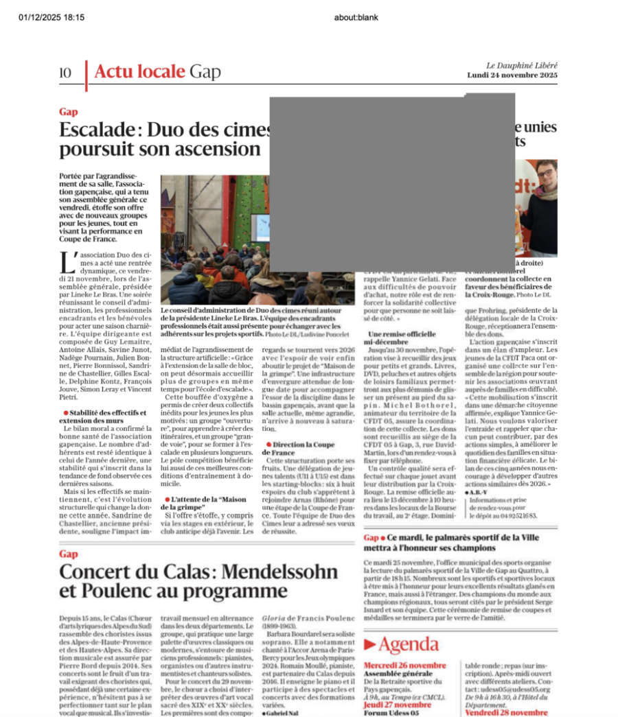 LE DAUPHINÉ LIBÉRÉ Annonce de notre journée découverte/recrutement à Gap le 14/10/23 et de notre concert à Veynes le 15/10/23